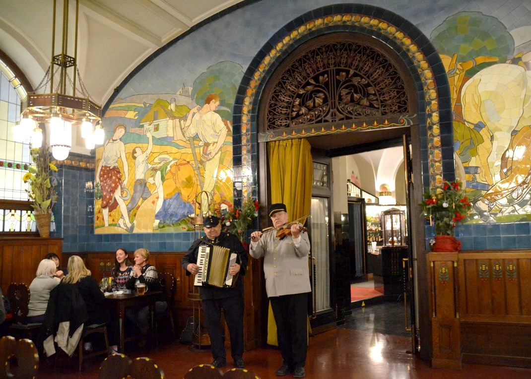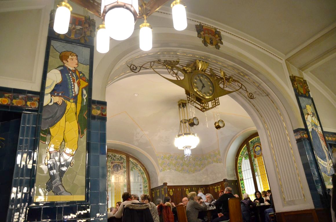Prague est une ville riche en superbes bâtiments de style Art Nouveau (je vous en reparlerai d’ailleurs dans mon deuxième article sur Prague). Un des plus beaux bâtiments, la Maison Municipale, abrite plusieurs bars et restaurants aux décorations qui vous transportent dans une autre époque.