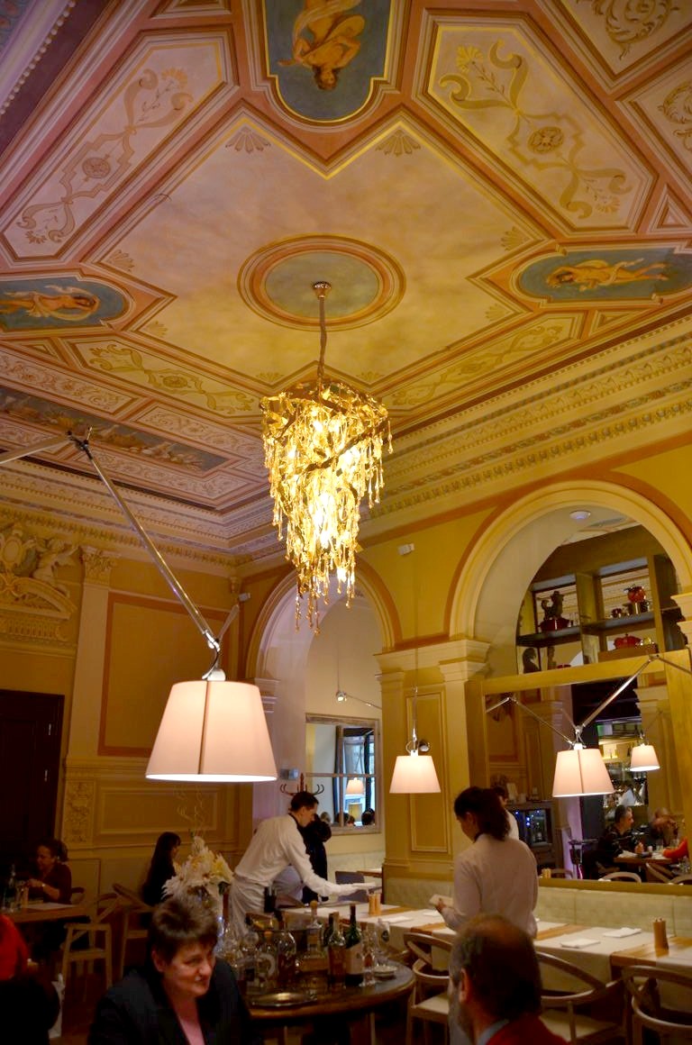 Pour un repas convivial, je vous recommande le restaurant Art Nouveau en sous-sol – doublé d’un bar si vous avez juste envie d’y prendre un verre. C’est un restaurant où j’avais déjà mangé lors de mon premier séjour à Prague, et l’ambiance n’a pas changé.