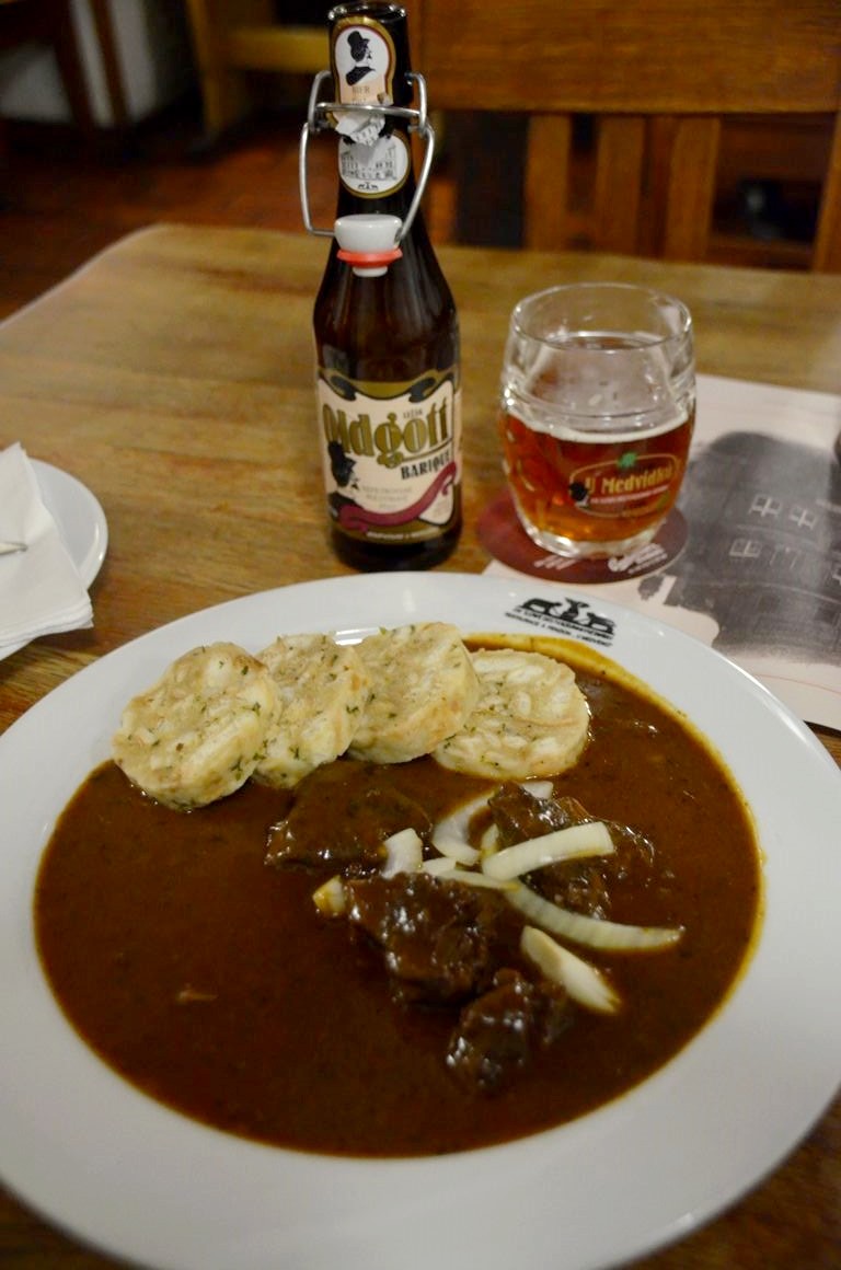 Une bonne adresse que ce soit pour l’hôtel ou le bar-resto, ne vous fiez pas pour une fois aux cars de touristes asiatiques. Cette fois-ci j’ai choisi de manger un grand classique : le goulash tchèque accompagné d’une de leurs bières. Toujours aussi bien et pour quelques euros seulement !