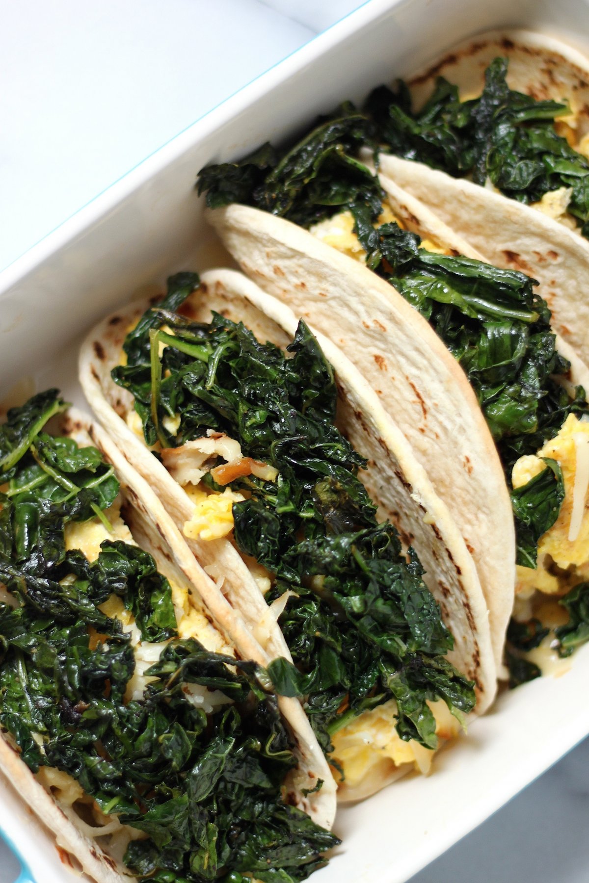 (5 Ingredient) Crispy Kale and Smoked Gouda Scrambled Egg Tacos – Baker by Nature