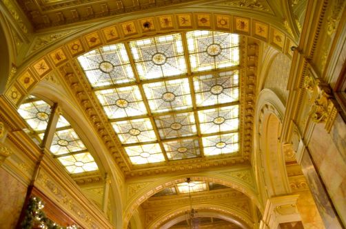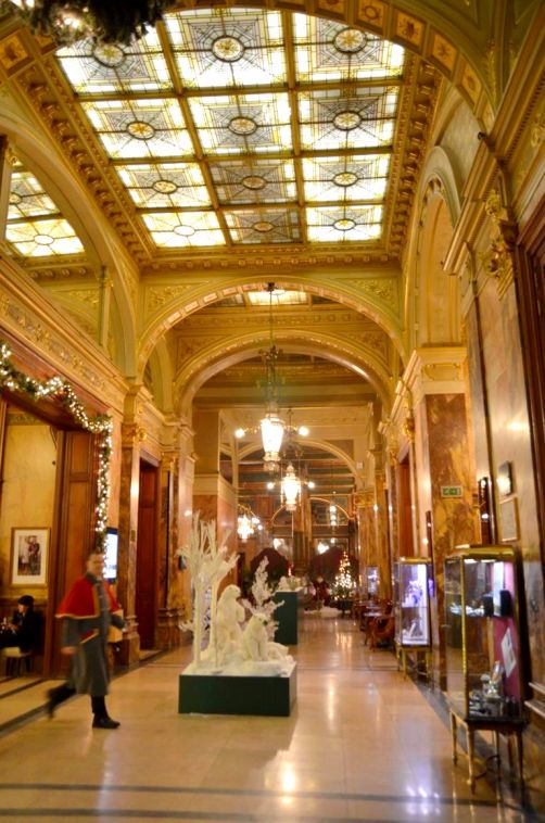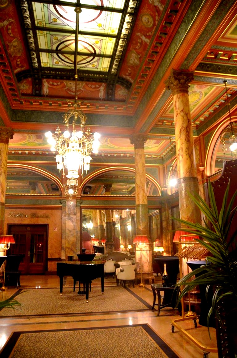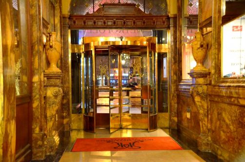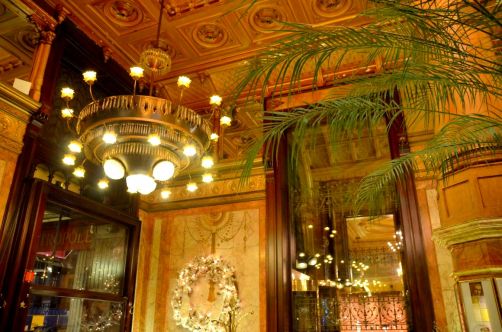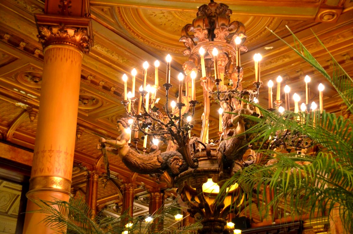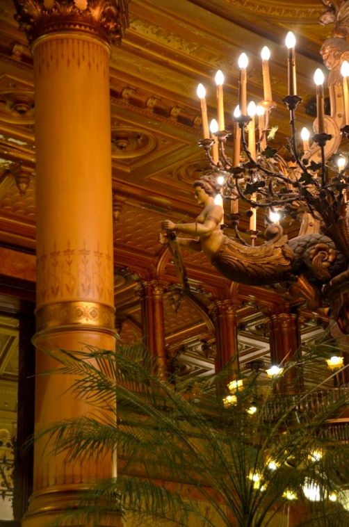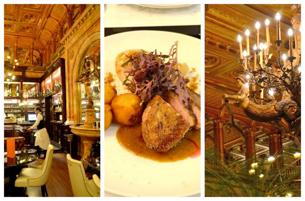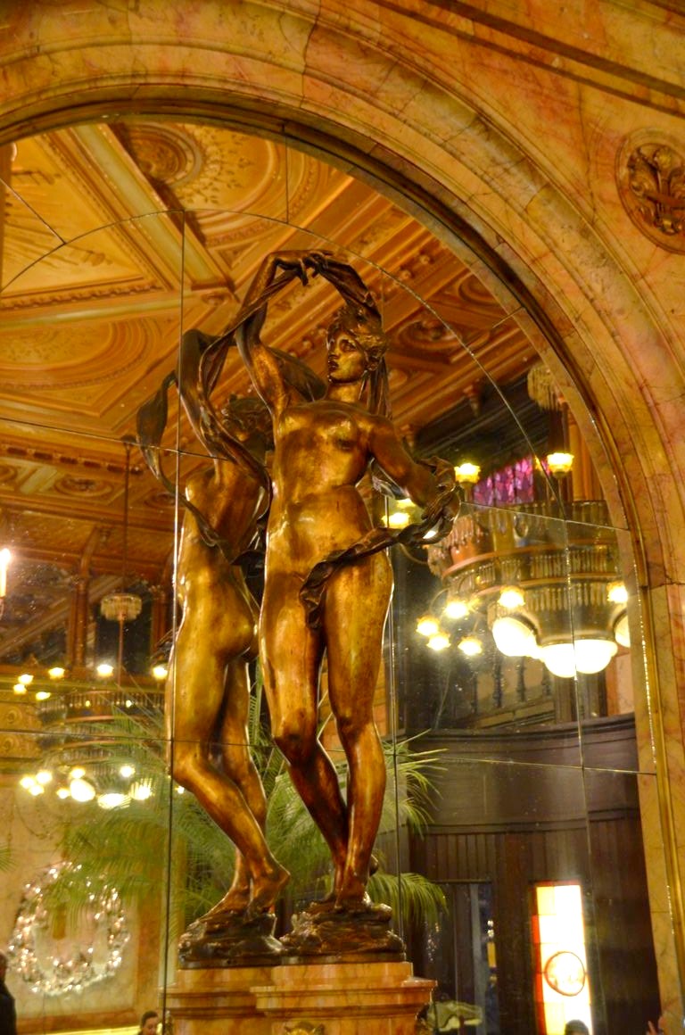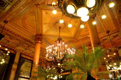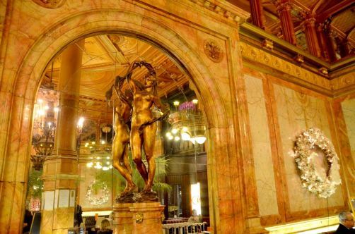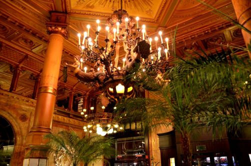 Après avoir entraperçu l’intérieur Belle Epoque de l’hôtel en assistant à une conférence il y quelques mois, j’y suis retournée ce mois-ci pour aller manger au Café Métropole. Et là, en ouvrant la porte du restaurant de l’hôtel Métropole, je suis restée tout simplement bouche bée, devant ses hauts plafonds, ses énormes lustres et ses sculptures.