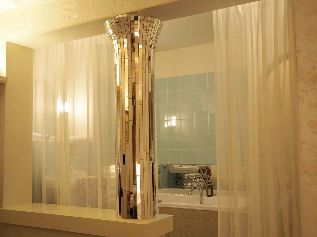 Chaque chambre a une décoration différente et porte un nom de femme. Nous avons dormi dans la chambre « Blanche », une chambre dans les tons pastel avec une jolie salle de bain ouverte avec baignoire et une petite touche paillettes comme je les aime.