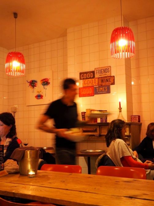 Je continue mes (bonnes) découvertes près de la Place Flagey ! Après un lunch chez LUKA, c’est aux Pénates que j’ai passé une soirée très conviviale il y a quelques jours de cela. Les Pénates est un bar à vin et restaurant qui occupe une ancienne boucherie dont plusieurs éléments ont été conservés, comme les carrelages blancs vintage et la chambre froide à l’entrée du resto.