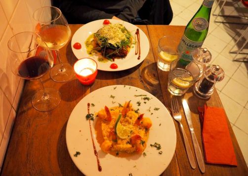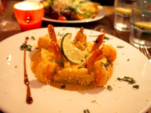 En plat, nous avons opté pour un plat classique, la lasagne végétarienne (13,90€) – qui m’a vraiment agréablement surprise – et un des plats en suggestion, le risotto aux scampis thaï (14,50€).