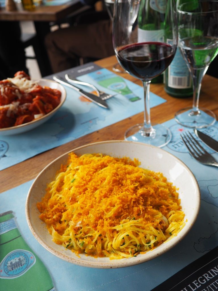 J’ai ensuite pris un plat de pâtes. Voulant me remémorer un peu mon voyage en Sardaigne, j’ai choisi les tagliolini bottarga, à la poutargue. Un goût qu’on aime ou qu’on déteste – moi j’adore et ce plat m’a vraiment transporté en Italie !
