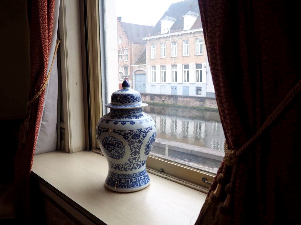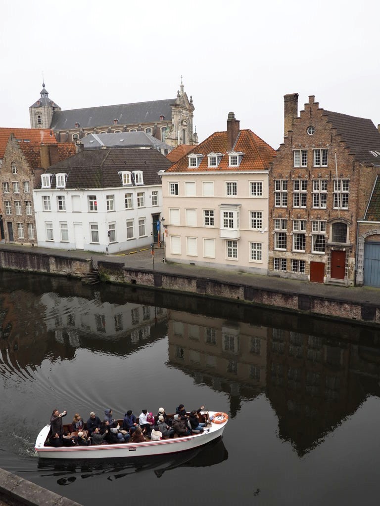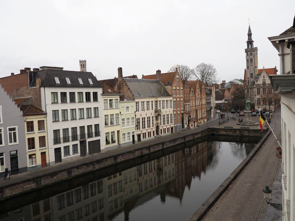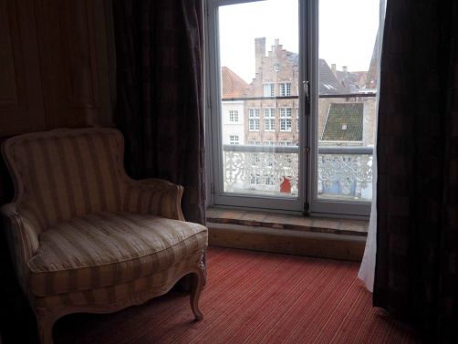 Le temps avait l’air vraiment maussade et ça ne donne pas envie de mettre le nez dehors. Mais Bruges derrière des vitres (même d’un hôtel grand luxe), c’est dommage, non ?