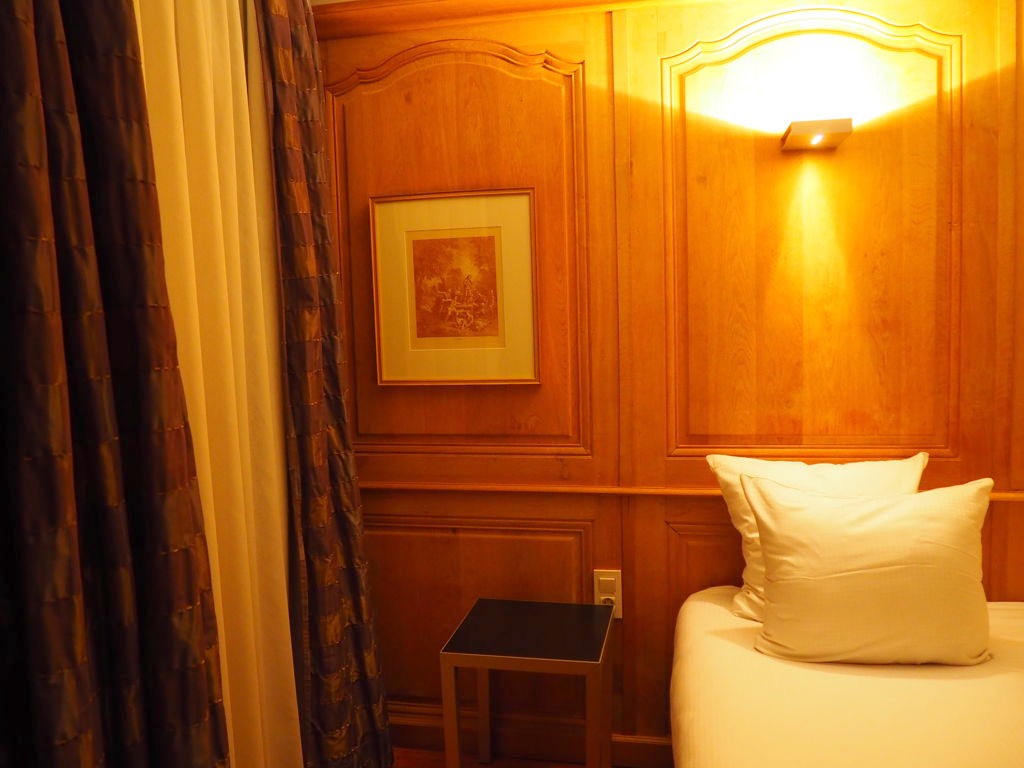 J’ai adoré la décoration (il faut aimer le style classique) des parties communes : lustres en cristal, hauts plafonds, belles cheminées, parquet, escaliers en chêne,… On a l’impression de plonger dans le passé, surtout dans le petit bar confidentiel de l’hôtel.