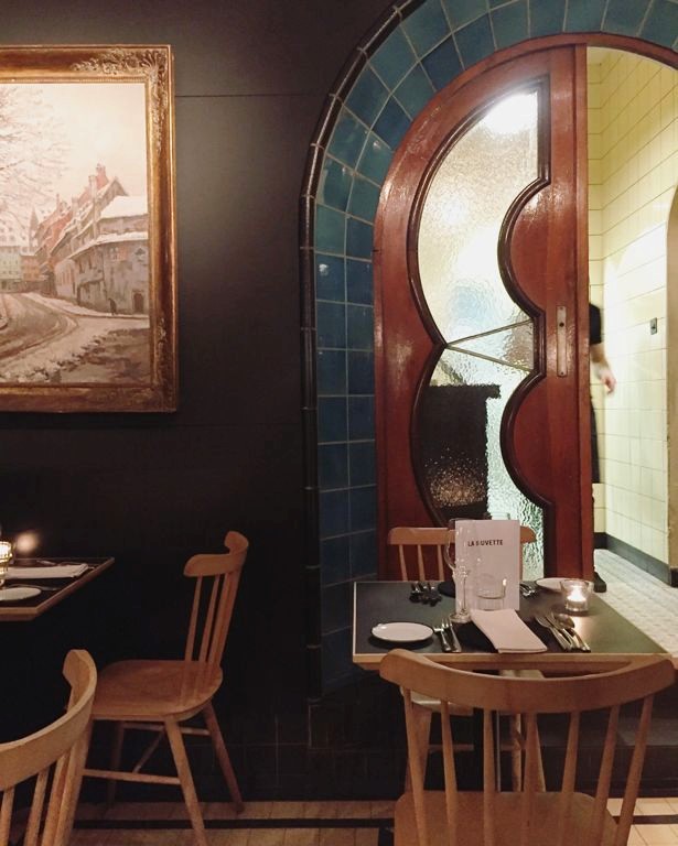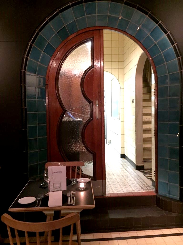 Bref, revenons-en à La Buvette. On est d’abord charmé par l’endroit, une ancienne boucherie de style Art Déco, dont ont été conservés les crochets, la table du boucher (sur laquelle on peut maintenant manger) et une superbe porte. La salle du bas est très cosy, c’est parfait pour passer une soirée en amoureux en soirée.