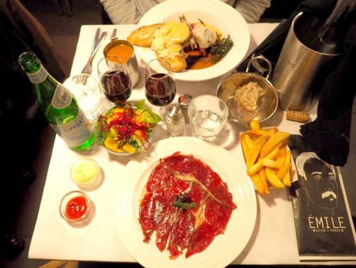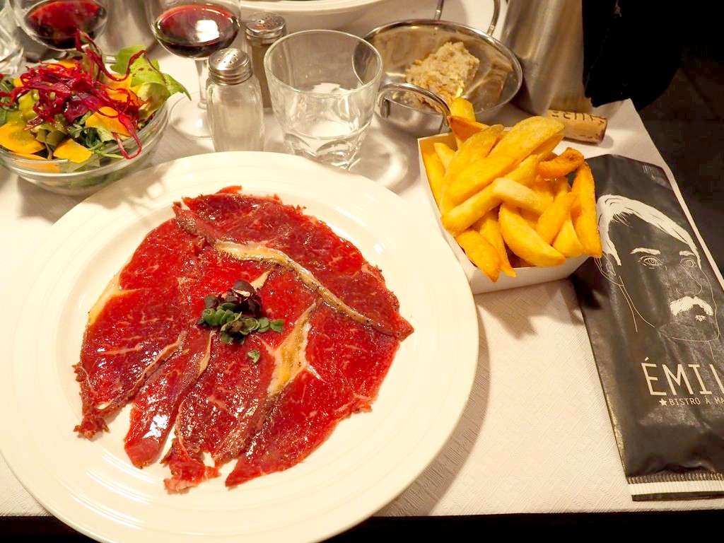 Pour continuer, après avoir résisté aux burgers qui me faisaient de l’œil (pour une prochaine fois !), je me suis régalée avec LE plat d’Emile Bistro : le bœuf maturé 49 jours, servi froid en fines tranches, et fumé au foin et au hêtre. Pour les amateurs de viande maturée, c’est l’un des meilleurs rapports qualité-prix de Bruxelles.