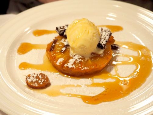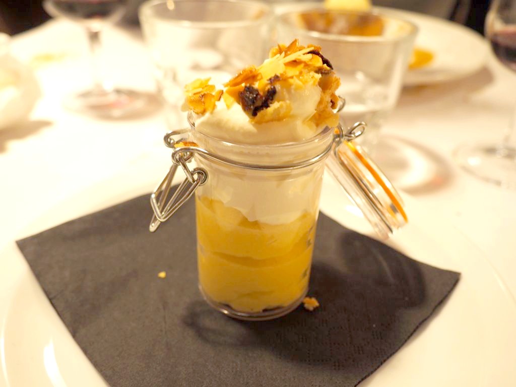 Comme dessert, vu que nos ventres étaient déjà bien remplis, nous avons opté pour les deux légers desserts de l’ardoise: la petite mousse au yuzu et crumble d’amandes, ainsi que l’ananas caramélisé aux épices. Pas lourds du tout, parfaits en fin de repas.