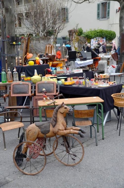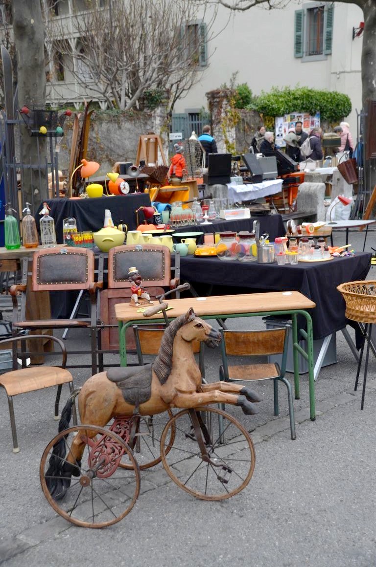 Le mercredi et le samedi matin, il y a également un grand marché de produits locaux à Carouge. Pour notre part, nous nous sommes baladé dans la brocante, qui a lieu tous les premiers dimanches du mois.