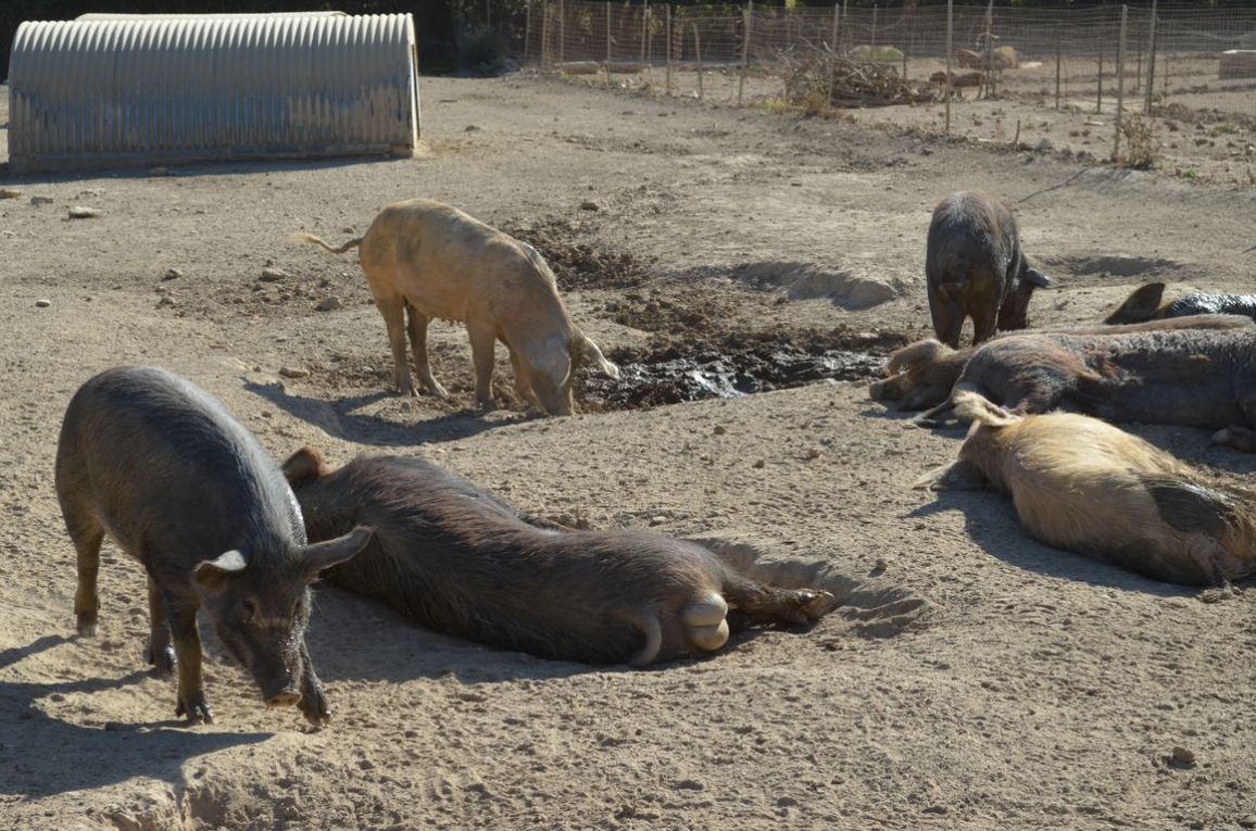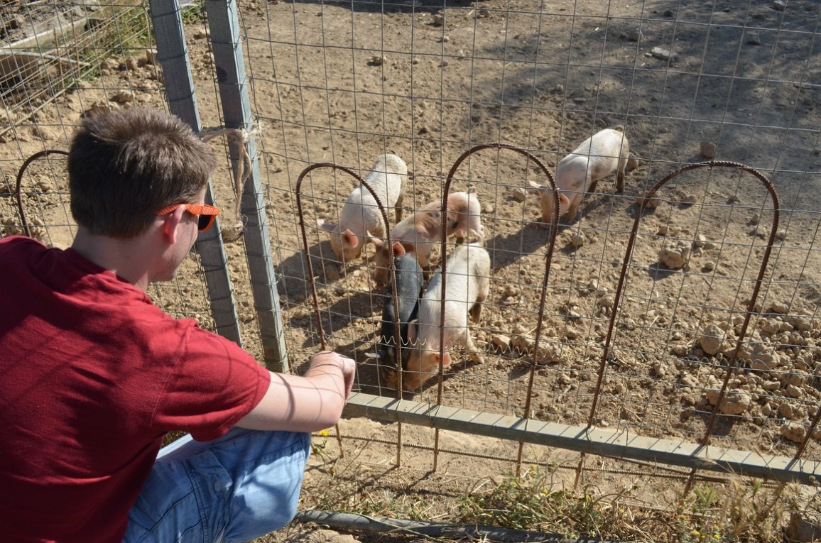 L’Agriturismo Grotta del Tesoro était la première étape de notre voyage. Et on peut dire qu’on a commencé fort. En pleine campagne, près du petit village de Santadi, cet agriturismo est à la fois des plus traditionnels (productions variées : potagers, arbres fruitiers, cochons – des petits sont même nés durant notre séjour!, chèvres, poules,… ) – et très propre et confortable dans l’espace réservé aux hôtes (il y a même la clim’).