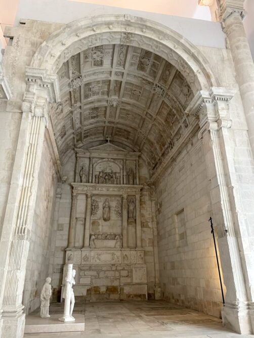 Enfin, pour en apprendre plus sur l’histoire de Coimbra, direction le Musée National Machado de Castro, auquel on accède par une belle loggia du 15ème siècle. A l’époque romaine, se trouvait à cet emplacement un grand centre administratif, politique et religieux, dont on peut voir les ruines dans les sous-sols du musée. Toute une portion de l’ancienne ville romaine a été préservée sous le centre-ville actuel, c’est vraiment impressionnant ! Ce fut ensuite un temple chrétien, puis le palais de l’évêque. Ce musée à l’histoire passionnante vaut le détour pour ses collections variées d’arts et d’archéologie.