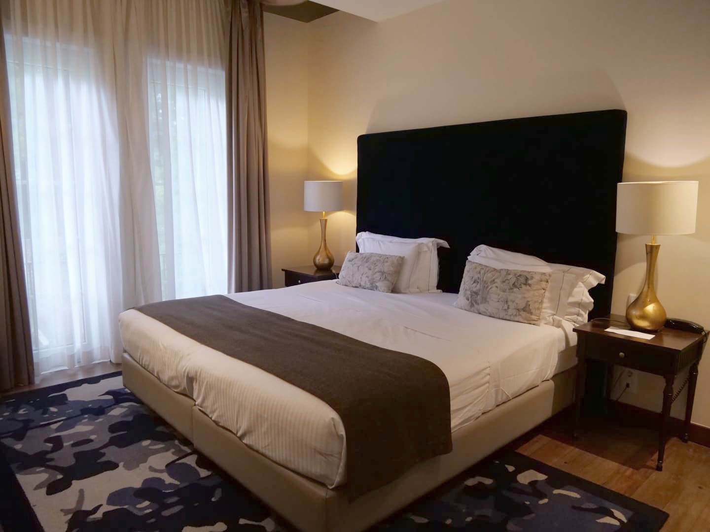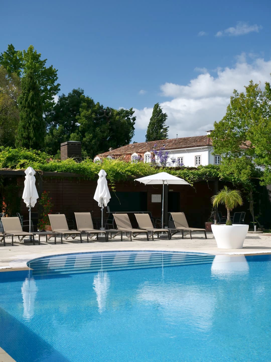 Ce splendide hôtel est installé dans un palais du 18ème siècle, entouré par 12 hectares de jardins historiques, dont les plus anciens datent du 14ème siècles ! Au Portugal, c’est un endroit très connu à cause de l’histoire d’amour entre les « Roméo et Juliette » du Portugal, le prince Pedro et sa bien-aimée Inês de Castro. On dit qu’ils s’y retrouvaient en cachette et que le prince lui envoyait des lettres en cachette en utilisant le tuyau transportant l’eau de la source qui s’y trouve. Bref, l’endroit romantique par excellence pour les portugais, et il faut dire que le cadre est vraiment charmant.