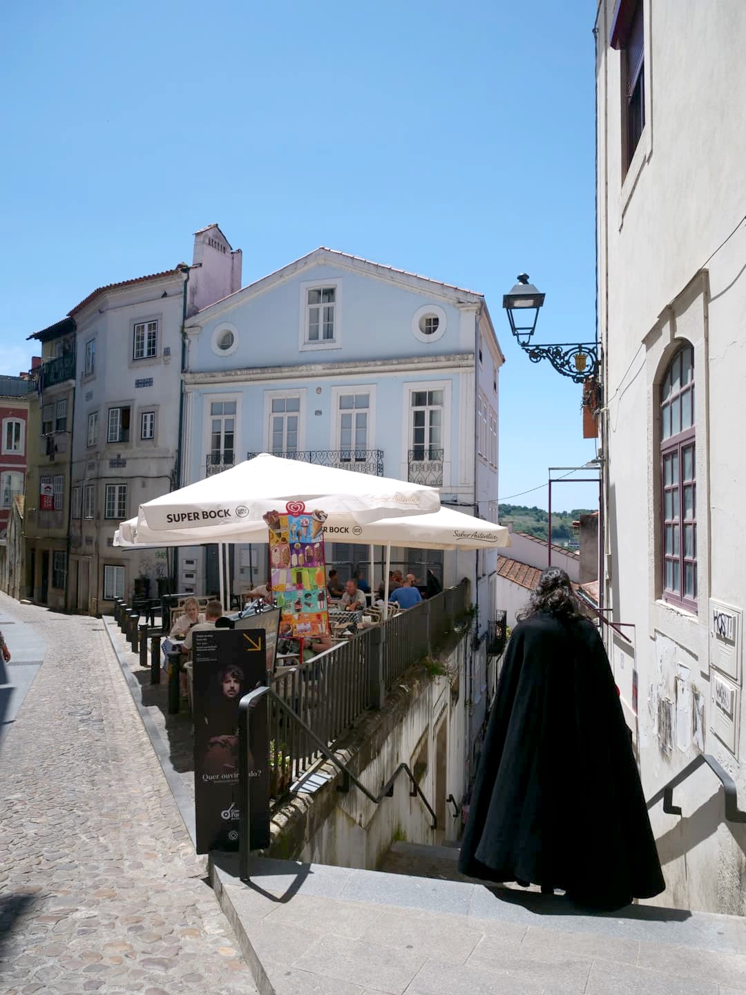 Mais les étudiants de Coimbra savent aussi s’amuser : le folklore estudiantin à Coimbra est l’un des plus riches en Europe ! L’élément essentiel de ce folklore est la « capa e batina », une cape noire portée par les étudiants aux moments forts de leur vie estudiantine. Plus classe que la toge étudiante belge, et de loin, pourtant c’est pour avoir le droit de la porter que les étudiants font leur bizutage, qui est étrangement beaucoup moins controversé qu’ici en Belgique ! Il faut dire que les autorités ont eu près de 8 siècles pour s’y habituer…!