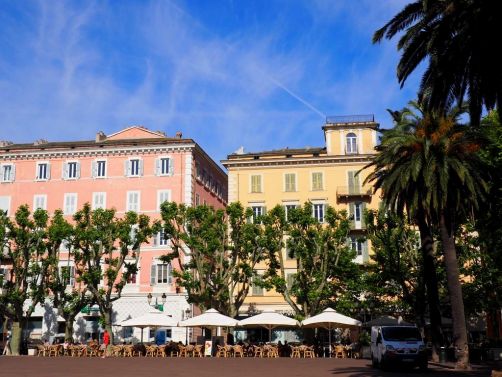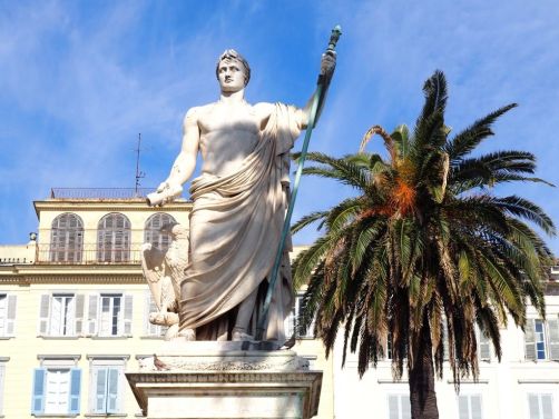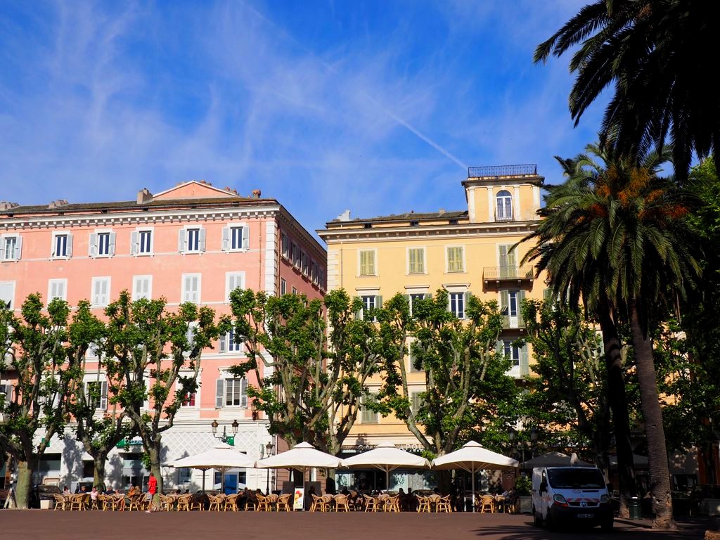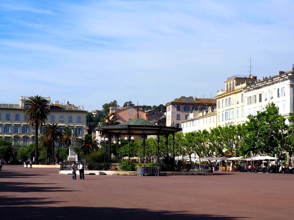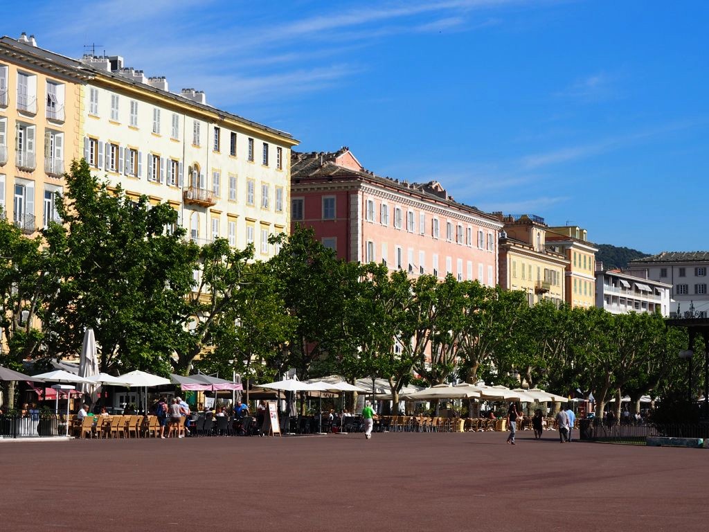 La balade débute sur la Place Saint-Nicolas, face au port, où vous trouverez également l’office de tourisme de Bastia. Sur cette grande place se trouvent de nombreux cafés mais aussi un joli kiosque à musique, un monument aux victimes de la guerre, et une grande statue de Napoléon.