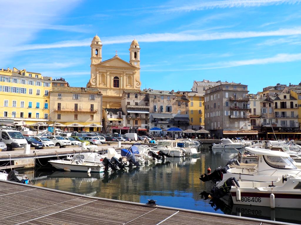 Nous continuons par quelques rues commerçantes jusqu’au Vieux Port, d’où nous prenons la photo « carte postale » de Bastia, avec l’église Saint-Jean-Baptiste derrière les bateaux du port. Nous mangerons d’ailleurs le midi dans l’un des nombreux restaurants du port.