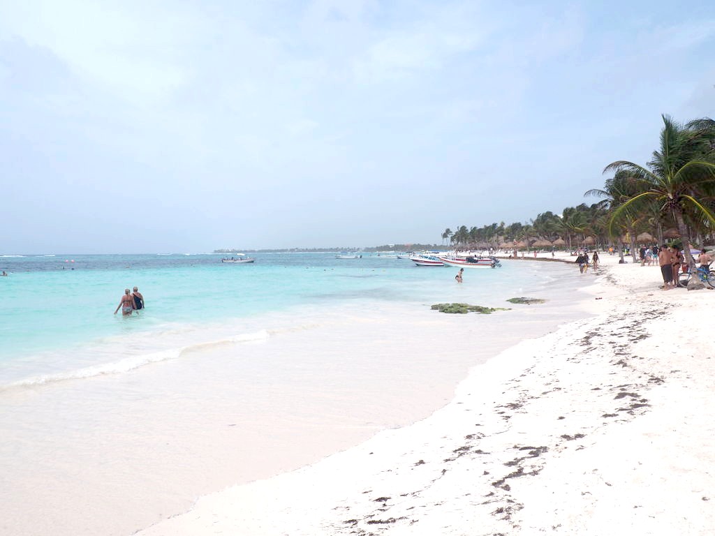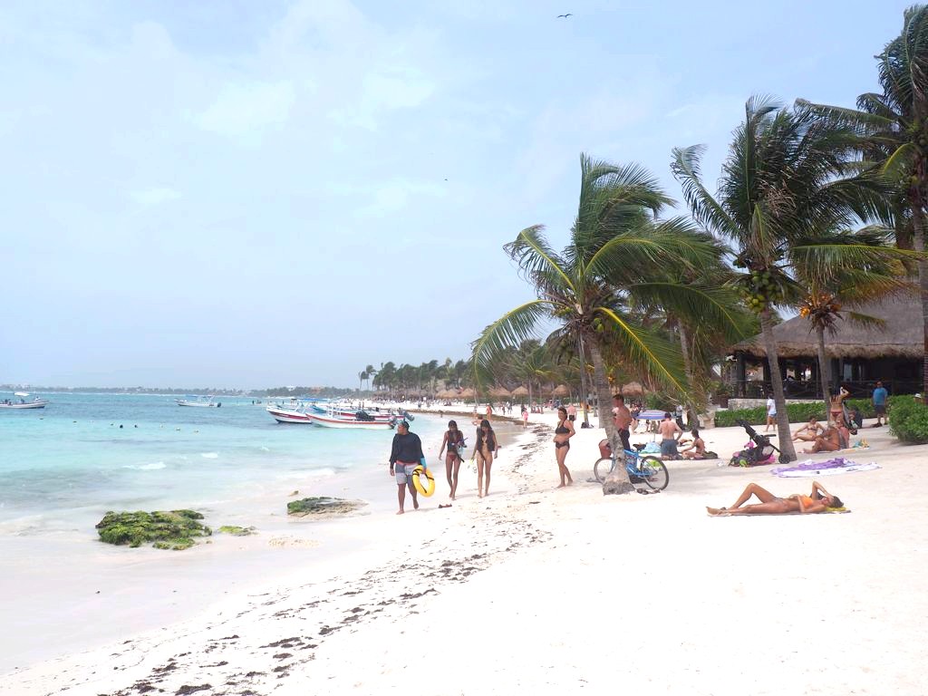 Plage publique mais accès payant. Comprends pas le concept. Payant 120 pesos par personne ( la raison n est evidement pas pour fluidifier le nombre de touristes). Sinon on nous a conseillé de passer par un hôtel gratuitement mais on apprend qu’il fait donner une caution de 200 pesos par personne mais que celle ci n était pas rendue mais convertie en bon achat au resto /bar.
