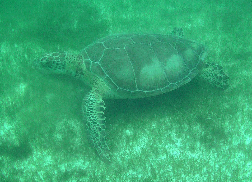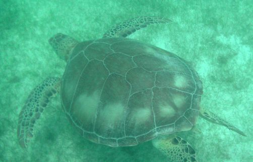 En moins de deux heures, j’en aurai vu 5 ou 6 différentes, qui sont à chaque fois restées très longtemps près de nous, à manger l’herbe des fonds marins avant de retourner de temps en temps prendre un peu d’air à la surface.