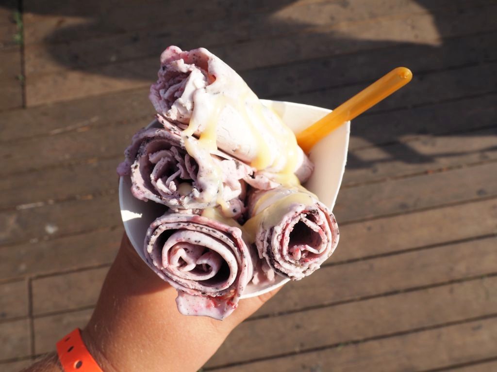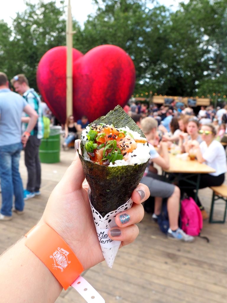 A l’occasion du Midsummer Festival, comme je vous l’avais dit plus haut, il y avait également beaucoup de foodtrucks présents pour l’occasion (c’était d’ailleurs le plus grand BBQ de l’année aux Pays-Bas). On a donc eu énormément de choix, et on a pu manger des plats qu’on ne trouve en général pas dans des parcs d’attractions, comme des temaki, des sandwichs au pulled pork, des falafels, etc…