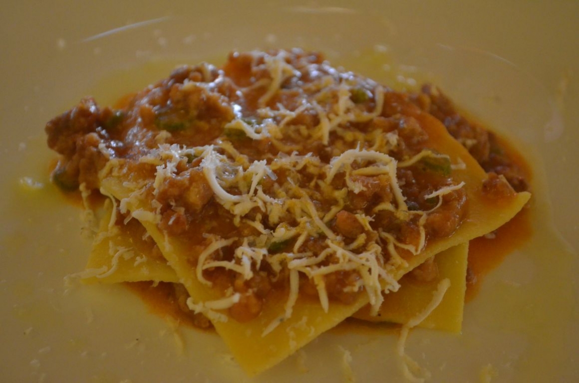 « lasagnette » au ragoût de saucisse fraîche, asperges, et ricotta fumée (mon petit coup de coeur du jour: simplement parfait !)