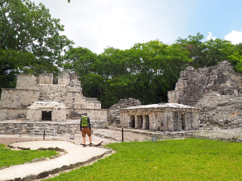 C’est le seul endroit au Yucatan où nous nous sommes vraiment sentis pendant un petit moment comme des explorateurs à la découverte de temples encore bien enfouis dans la jungle. Le visiteur est très libre ici, c’est chouette d’aller explorer un peu en dehors des sentiers ! Il y a trois groupes de temples principaux à visiter. Certains temples n’ont pas été entièrement restaurés.