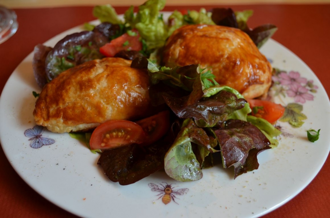 Bon, ce n’est pas de la grande gastronomie, mais c’est de la cuisine simple et goûteuse, plein de bonnes herbes aromatiques fraîchement cueillies, et en plus l’ambiance et la déco sont vraiment dépaysantes, on se sent vraiment à la campagne. En entrée, on a eu le plus top: le feuilleté de chèvre au miel à la liqueur de roses de la Liquoristerie Gervin.