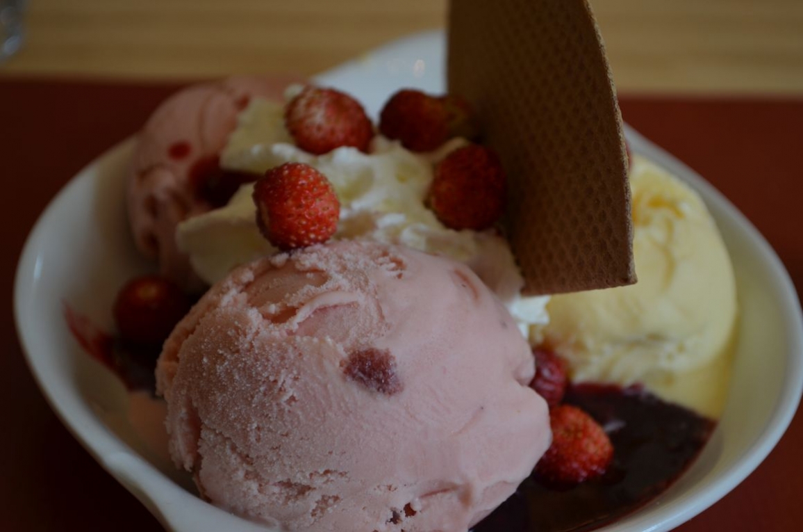 Les arômes étaient vraiment extra, même si du coup ça cachait un peu la rose. Mais on sentait quand même bien la liqueur, ce qui n’était pas le cas dans le plat principal, la cassolette de poulet à l’Amer Labiau de la Liquoristerie Labiau, une liqueur aux herbes. A part que la liqueur était vraiment bien cachée, c’était quand même très bon. En dessert, du super frais, avec la coupe vanille et fraises à la liqueur de Frénésie du Cellier Saint Pierre.