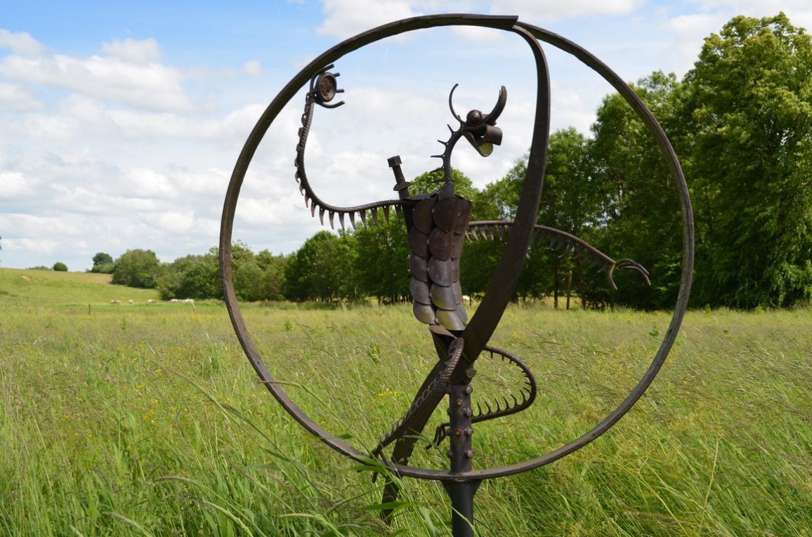 Plusieurs oeuvres sont fabriquées à partir d’outils de la ferme recyclés!