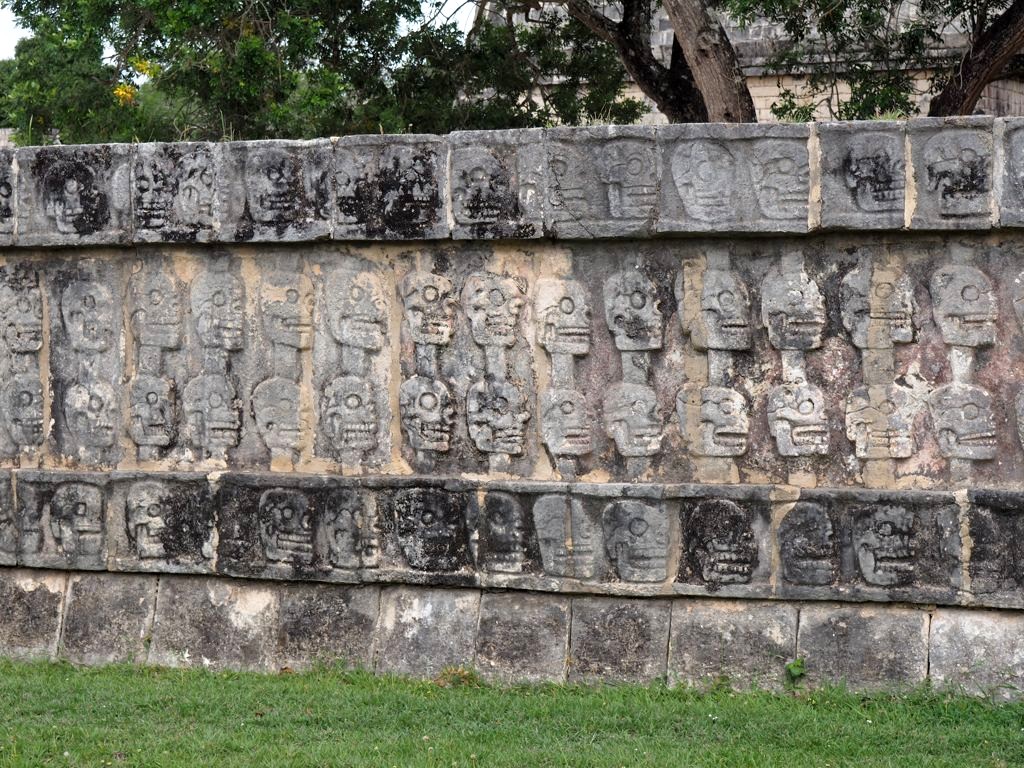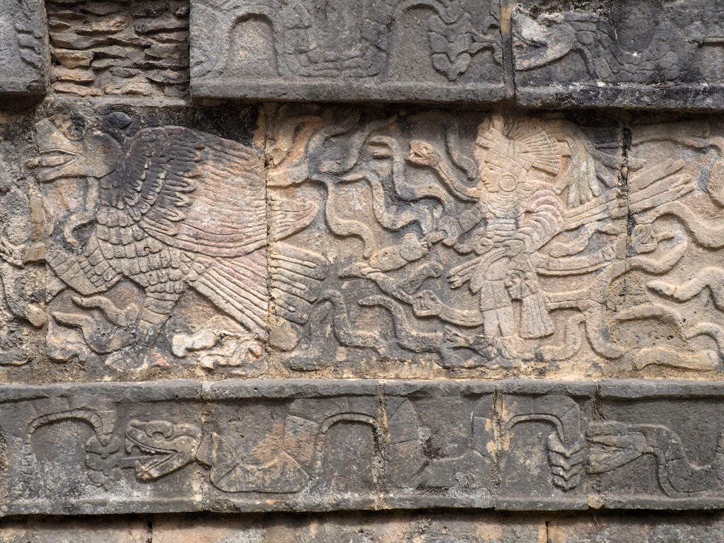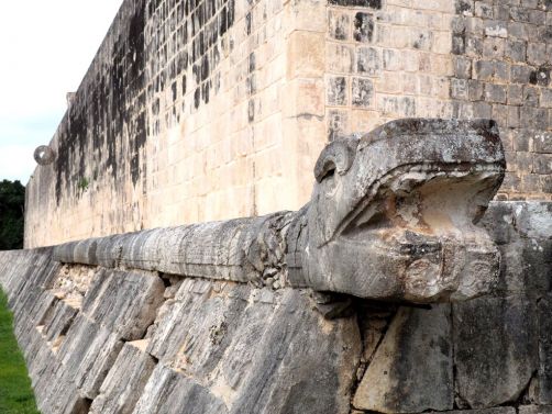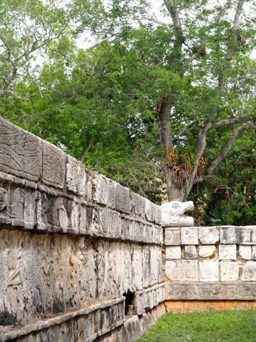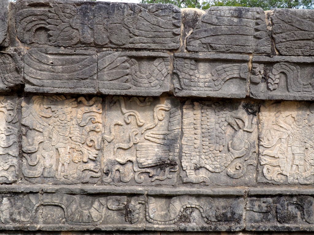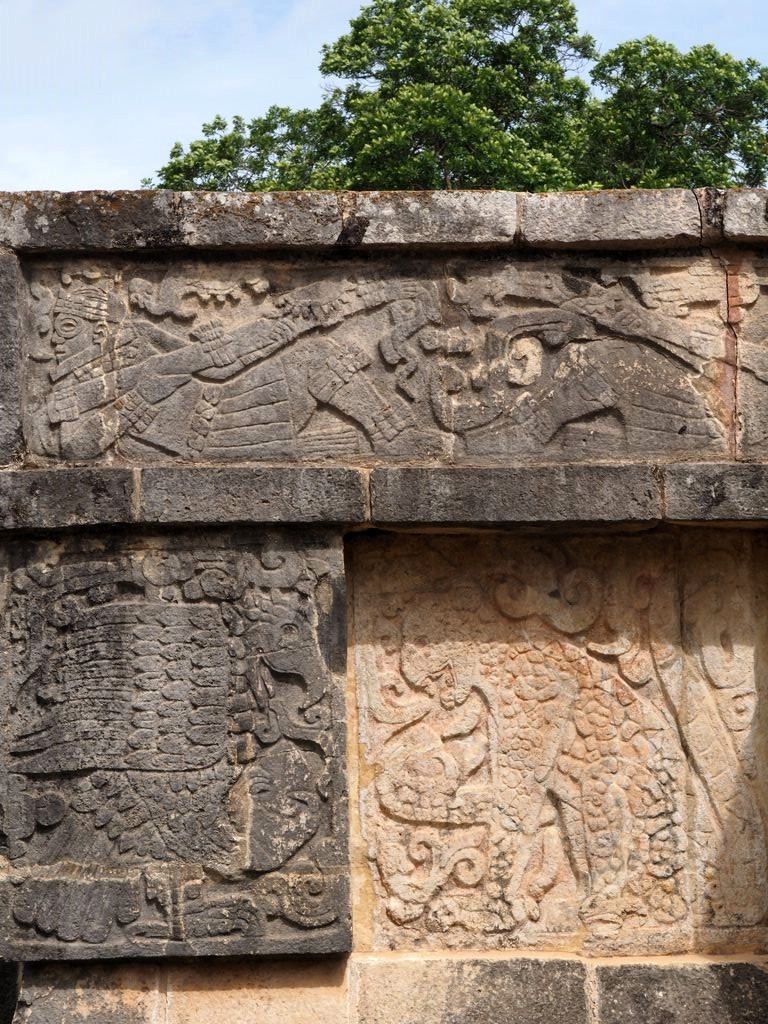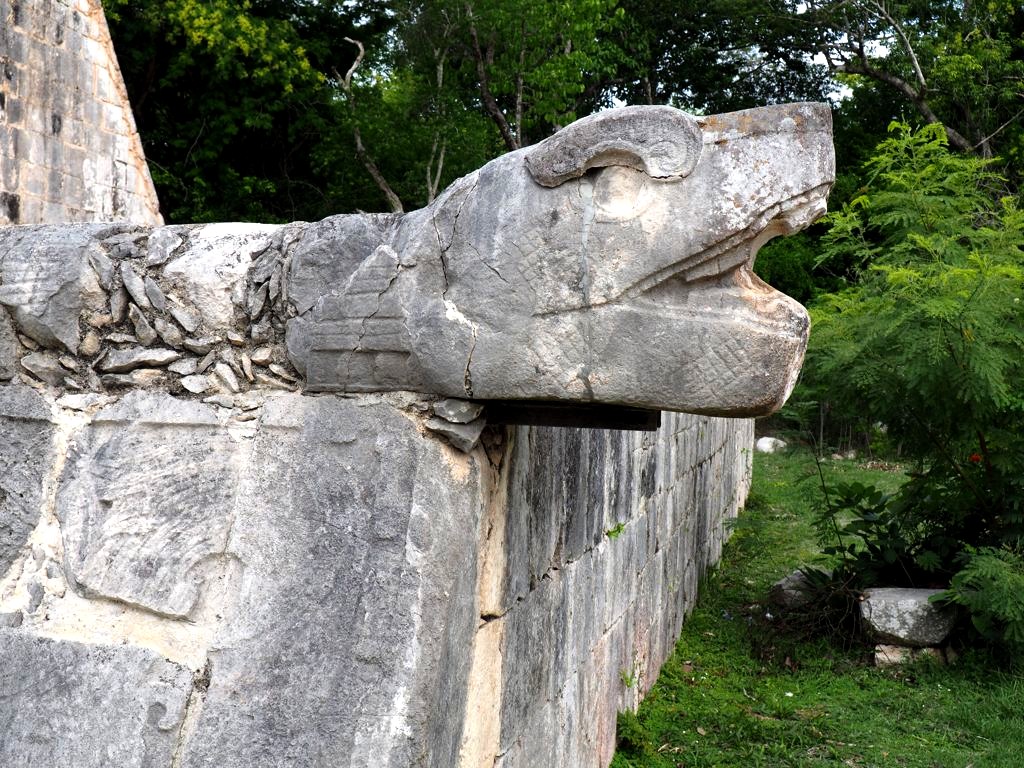 Pour la visite du reste du site, les groupes et vendeurs sont plus dispersés, donc vous pouvez prendre votre temps. Ce qui différencie Chichen Itza des autres sites mayas que nous avons pu voir dans la Péninsule du Yucatan, c’est la très forte influence de la civilisation Toltec, qui se mèle ici à la culture Maya. La symbolique qui en résulte sur le site est donc très intéressante : on retrouve à la fois des représentations souvent bien conservées du dieu de la pluie maya Chac Mol, et Quetzalcoatl, le dieu serpent à plumes Toltec (Kukulcan en maya). C’est le seul site que j’ai visité où j’ai pu lire assez facilement les histoires représentées sur les fresques des bâtiments. Donc ouvrez l’œil, c’est magnifique !