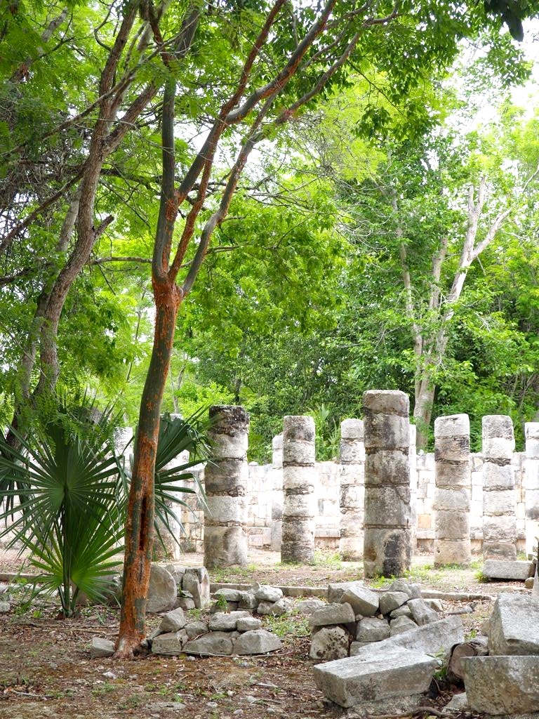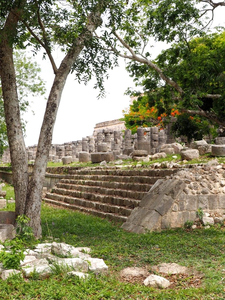 Les autres endroits à ne pas rater pendant votre balade sur le site : le grand terrain de Jeu de Pelote près de l’entrée (le plus grand du Mexique), le groupe des Mille Colonnes (le nom parle de lui-même je crois), mais au final je crois que la partie que j’ai préféré (et pourtant beaucoup de groupes n’y vont même pas), c’est la zone autour de l’observatoire (El Caracol).