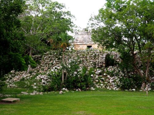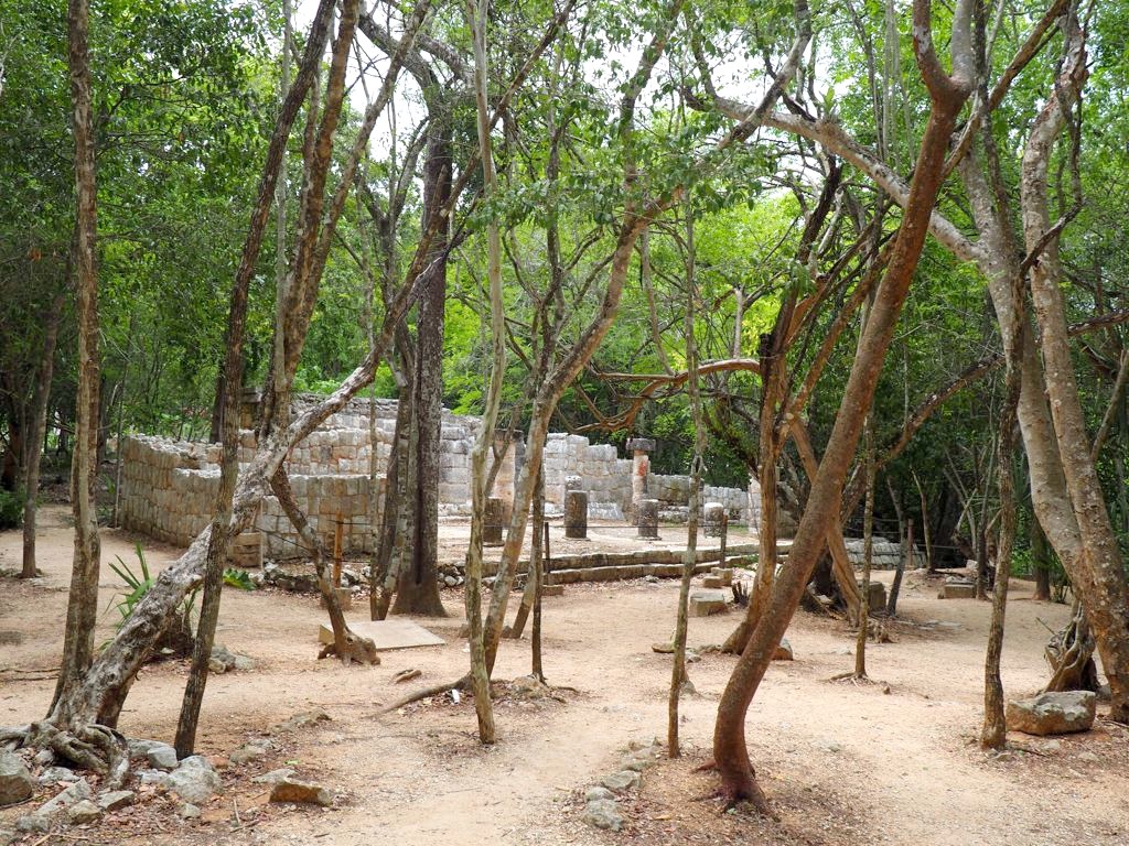 Certains bâtiments dans ce coin sont difficilement accessibles, c’est l’occasion pour les aventuriers de jouer un peu aux Indiana Jones : eh oui, même dans un site comme Chichen Itza c’est possible ! Si vous voulez vous amusez un peu, suivez donc le signe vers Akab Dzib.