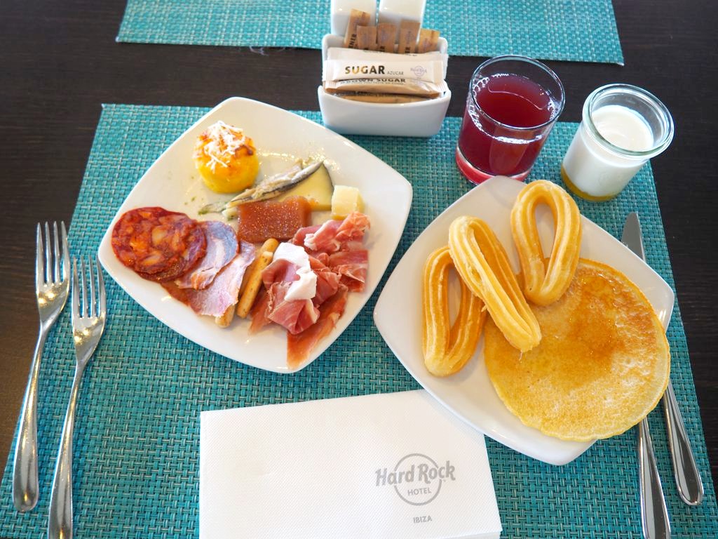 Au niveau des restaurants, on est assez loin des Hard Rock Cafés, en tout cas dans l’hôtel d’Ibiza. L’hôtel a fait le choix de proposer de la nourriture plus locale, comme des tapas, même si au petit-déjeuner on trouve vraiment de tout, du full British breakfast jusqu’aux salaisons et fromages espagnoles.