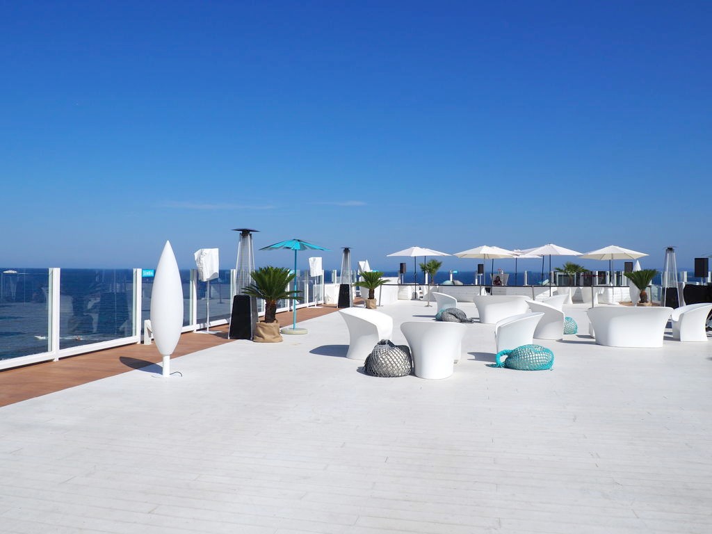 Sans oublier le rooftop bar, avec une vue de dingue sur Ibiza, parfait pour boire un petit verre avec une vue à nouveau incroyable.