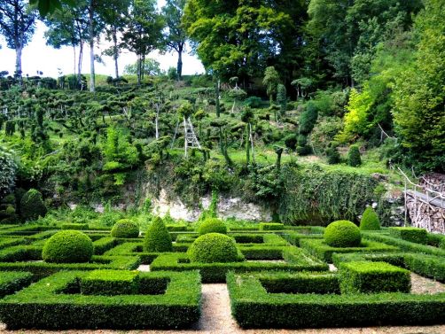 Autre lieu pour le moins étonnant, les Jardins du Prieuré de Vauboin à Beaumont-sur-Dême sont l’oeuvre de Thierry Juge, leur propriétaire passionné et très créatif. Avec comme star : le buis, très carré en bas, et taillé de manière plus artistique sur le coteau qui domine le prieuré. Un lieu très mystérieux !