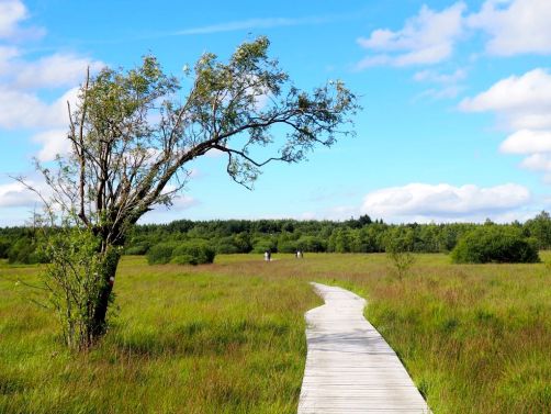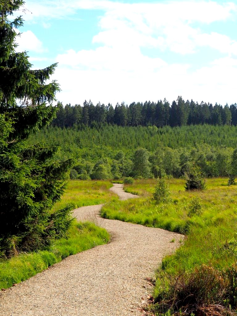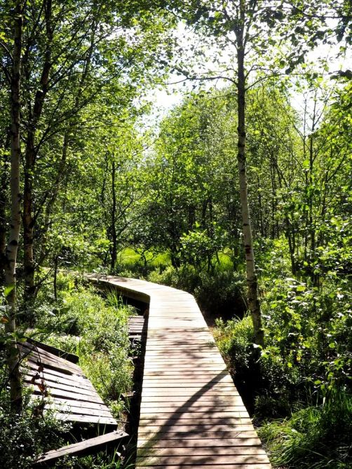 On découvre un paysage plus varié, entre les tourbières, les fagnes et les forêts du coin. Une partie des chemins ont été récemment refaits, et certains des passages en bois ont été remplacés par des sentiers, j’espère quand même que ça ne sera pas le cas partout dans le futur car ça fait partie du charme de l’endroit pour moi !