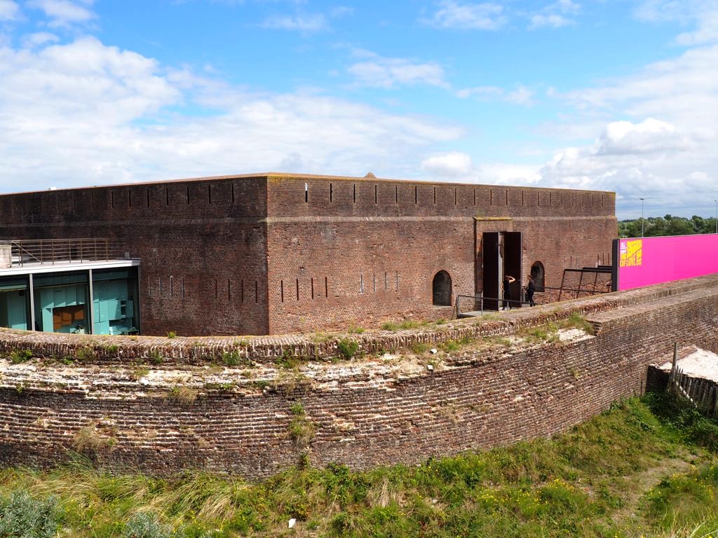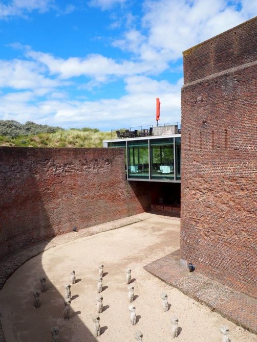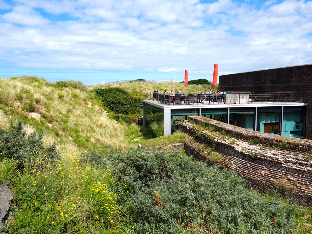 On a ensuite traversé les dunes pour arriver à l’entrée du Fort Napoléon, qui comme son nom l’indique est un bâtiment militaire datant de l’époque napoléonienne. Pendant les deux guerres mondiales, il devint un quartier d’artillerie des allemands.