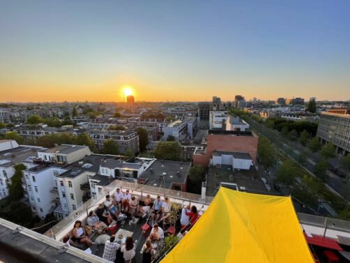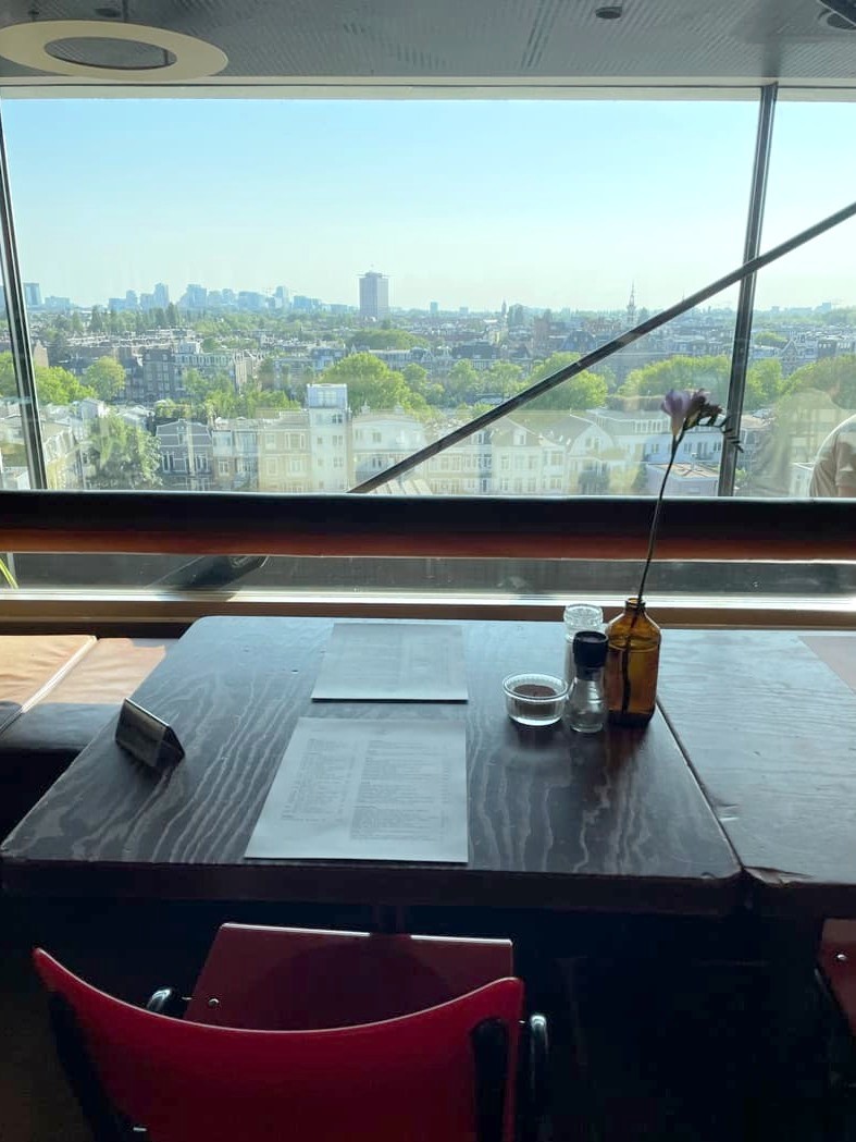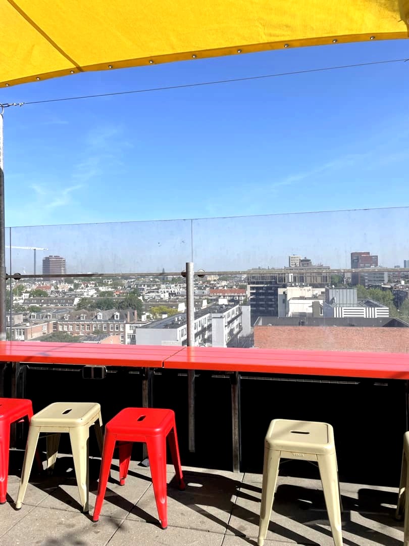 Lors de mon séjour au Volkshotel (voir mon article dédié), j’ai eu l’occasion de tester leur restaurant principal, populaire aussi bien auprès des touristes que des locaux : le Canvas. Ouvert du matin au soir, ce resto convivial situé dans les étages supérieurs de l’hôtel offre une vue panoramique sur Amsterdam. À la carte, de bons petits plats à partager, façon bistronomie, et un large choix de boissons pour accompagner le tout. En fin de soirée, ça devient plus animé et il y a même un DJ le weekend !