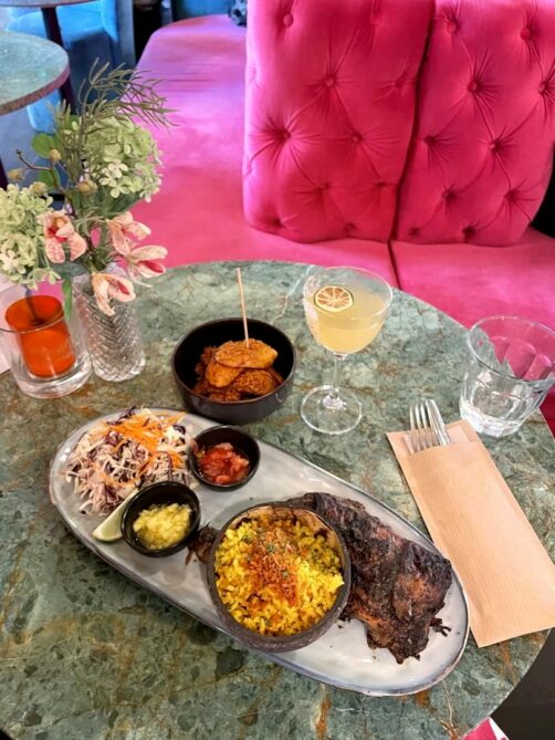 Pour le côté resto, ils collaborent avec Ed’s Caribbean Street Food qui y sert une cuisine street food aux saveurs des Caraïbes, accompagnée de bons cocktails. J’ai opté pour un grand classique, le jerk chicken. Bon, mais pas le meilleur que j’ai mangé. La margarita était par contre excellente. Et si vous avez envie de profiter encore plus, sachez qu’ils proposent aussi des formules « bottomless », avec boissons en illimité, cocktails compris.