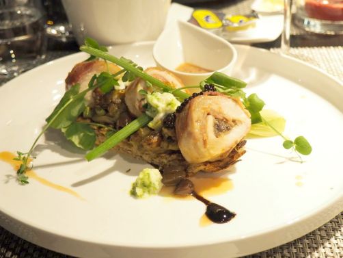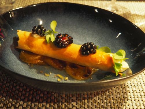 Quoi qu’il en soit, nous avons bien sûr découvert la cuisine de l’hôtel, où le chef Nicolas Mottart propose une carte de saison, essayant de suivre au maximum la philosophie écologique de l’hôtel. Le soir, c’est un menu en 3 ou 4 services qui est proposé, avec un choix de 6 entrées, 6 plats et 6 desserts. Pour apporter une petite touche belge à la carte, une des spécialités du chef est de revisiter la fameuse gaufre belge dans ses préparations !