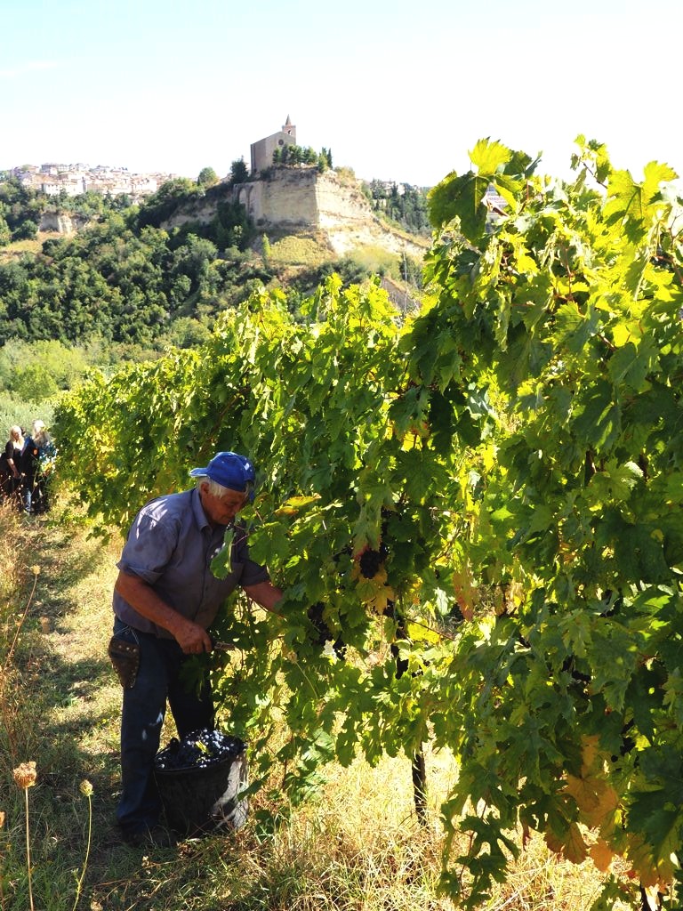 Quelques jours seulement après avoir assisté à des vendanges mécaniques en France, je peux vous dire que me retrouver dans les collines du Piceno, au milieu des vendangeurs qui suaient à la tâche en plein soleil, à remonter les pentes abruptes des vignobles, pour sélectionner manuellement chaque grappe de raisin, ça m’a tout de suite donné une bonne idée du caractère traditionnel de la région. Car dans le Piceno, croyez-moi, on ne rigole pas avec le vin, et on fait les choses dans les règles de l’art ! Nous avons rencontré de fortes personnalités, passionnées par leur travail, soucieuses de faire vivre pendant encore longtemps leur terroir unique.