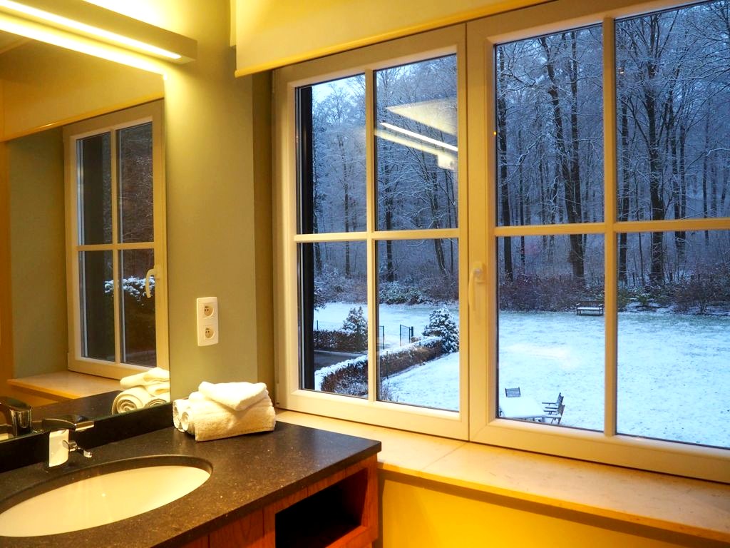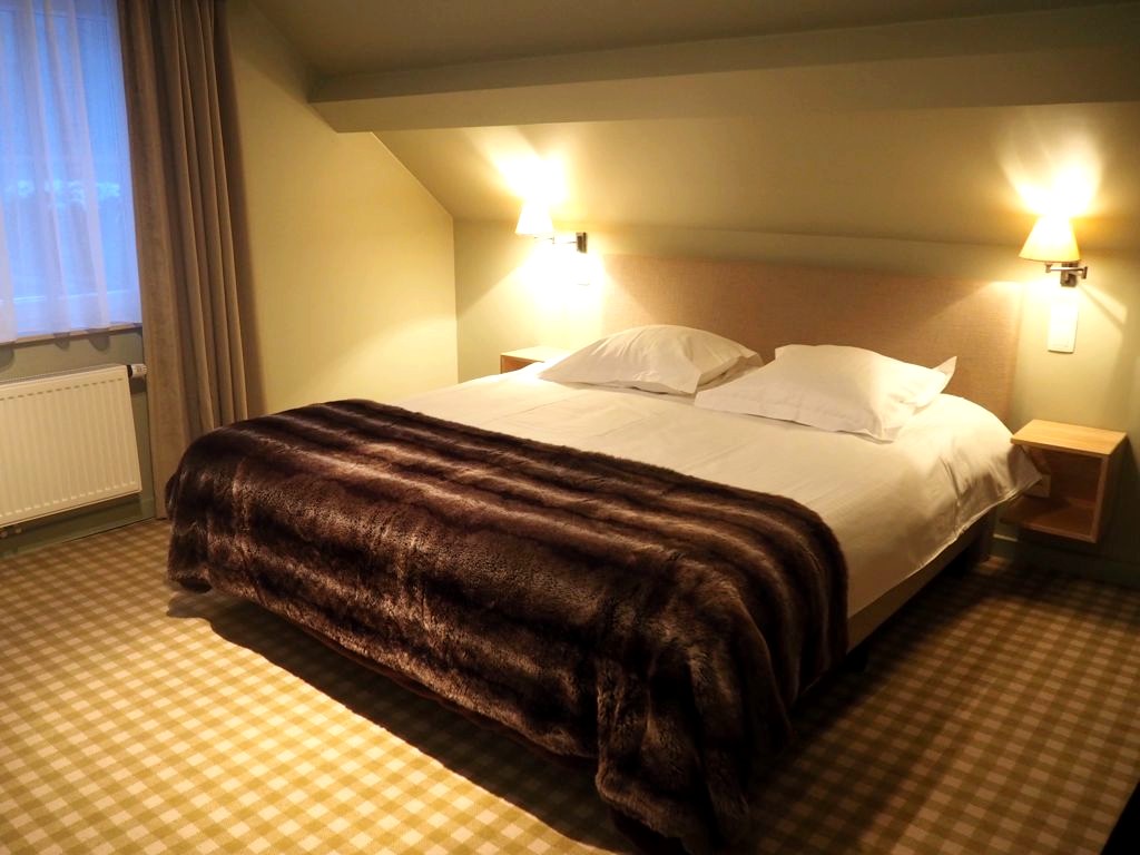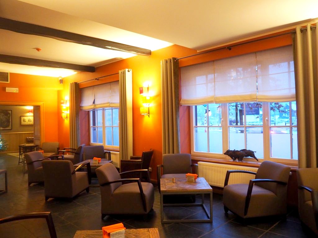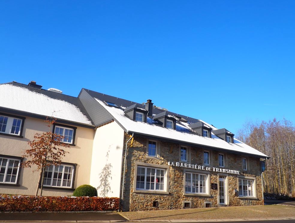 Laissez-moi d’abord vous présenter l’hôtel, que nous avons eu la chance de découvrir alors que la neige tombait dehors… un cadre on ne peut plus magique ! Nous avons logé dans le bâtiment principal de la Barrière de Transinne (il y a également une annexe plus récente) dans une chambre supérieure tout confort, avec vue sur le jardin et la forêt. Au total, l’hôtel compte 28 chambres, toutes rénovées, tout en gardant un cachet très forestier.