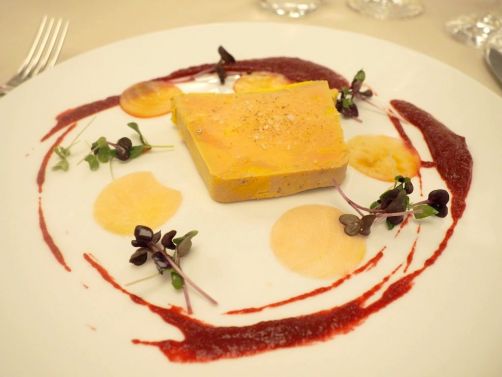 Le chef nous a tout d’abord fait déguster une de ses spécialités, le foie gras maison. Nous ne sommes pas de grands fanas de foie gras mais celui-ci était l’un des meilleurs que j’ai mangé ! La spécialité du chef ne nous a donc pas déçus.