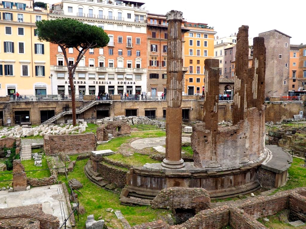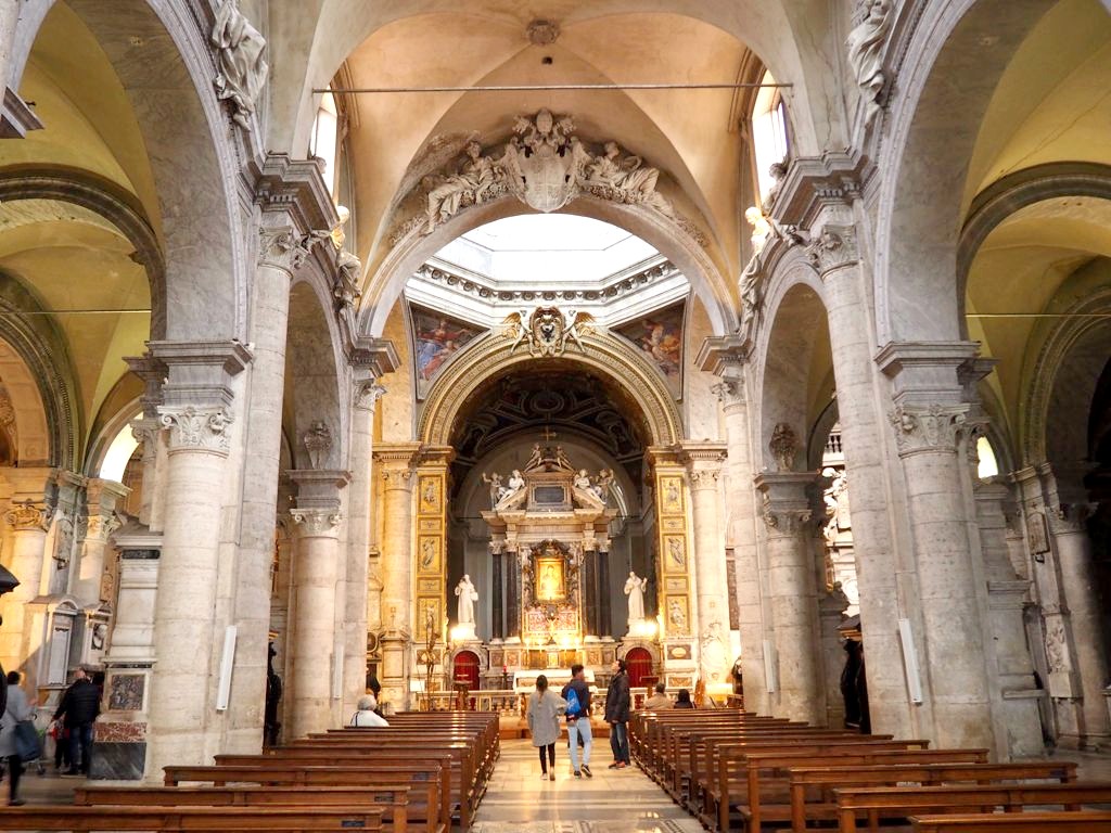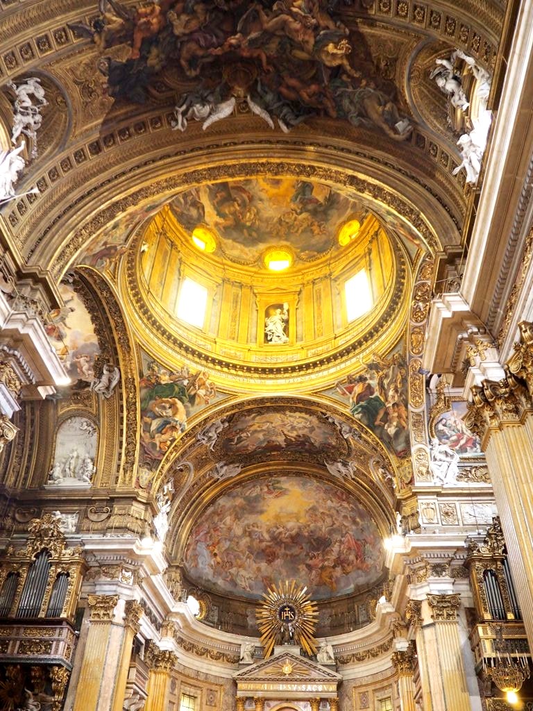 Nous visitons la magnifique Chiesa del Gesù (une de mes préférées) avant d’aller manger un bout près des ruines du Largo di Torre Argentina (voir mon article pizzas à Rome !)