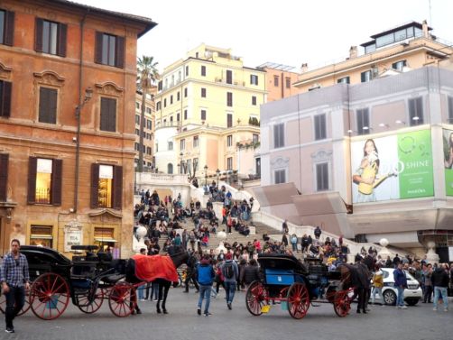 Petite pause tiramisu près de l’hôtel en fin d’après-midi, avec un passage par les bondés escaliers de la Piazza di Spagna : je n’ai pas compris le succès de cet endroit !