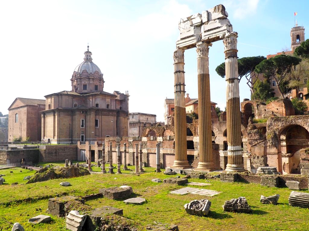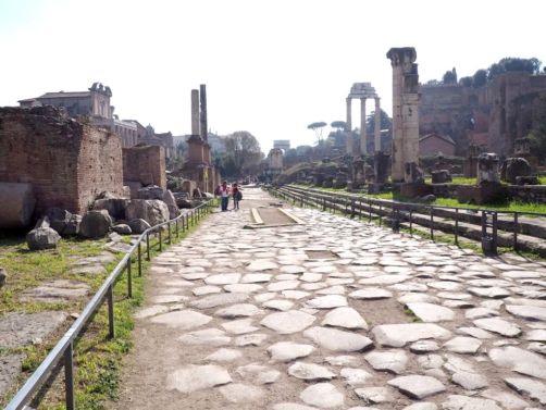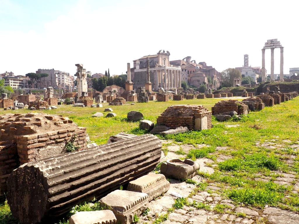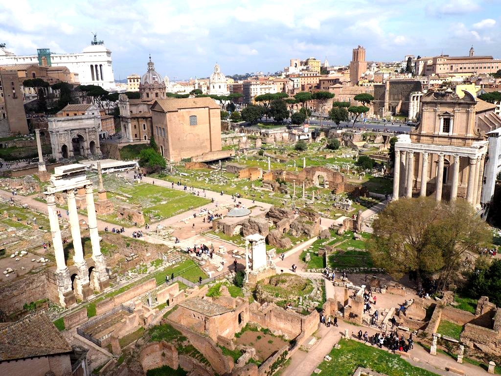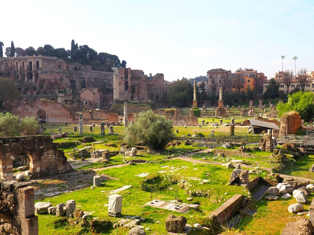On zappe les Musées du Capitole pour commencer notre visite avec le Forum Romain et le Palatin (un seul billet pour les deux sites). On se trouve ici au cœur de la Rome Antique. il y a énormément de ruines, de temples, et vestiges divers : on a un peu regretté de ne pas avoir de guide. Le site est traversé par la Via Sacra, qui était la route antique la plus prestigieuse. Après avoir parcouru le Forum, on grimpe au Mont Palatin, d’où la vue est plutôt sympa !