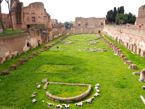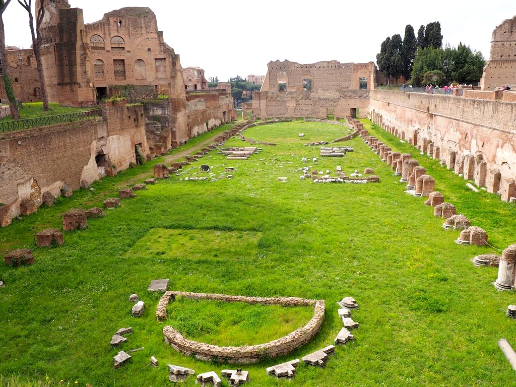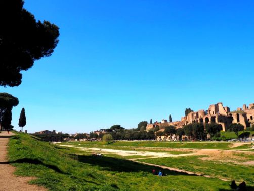 Nous avons marché jusqu’à l’église atypique de Santo Stefano Rotondo (une église circulaire), avant de traverser les jardins de la Villa Celimontana (un petit havre de paix) et la Piazza dei Santi Giovanni e Paolo, en direction du Circus Maximus, les ruines d’un énorme cirque où avaient lieu des courses de char durant l’Antiquité : 250.000 spectateurs pouvaient y assister, rien que ça !
