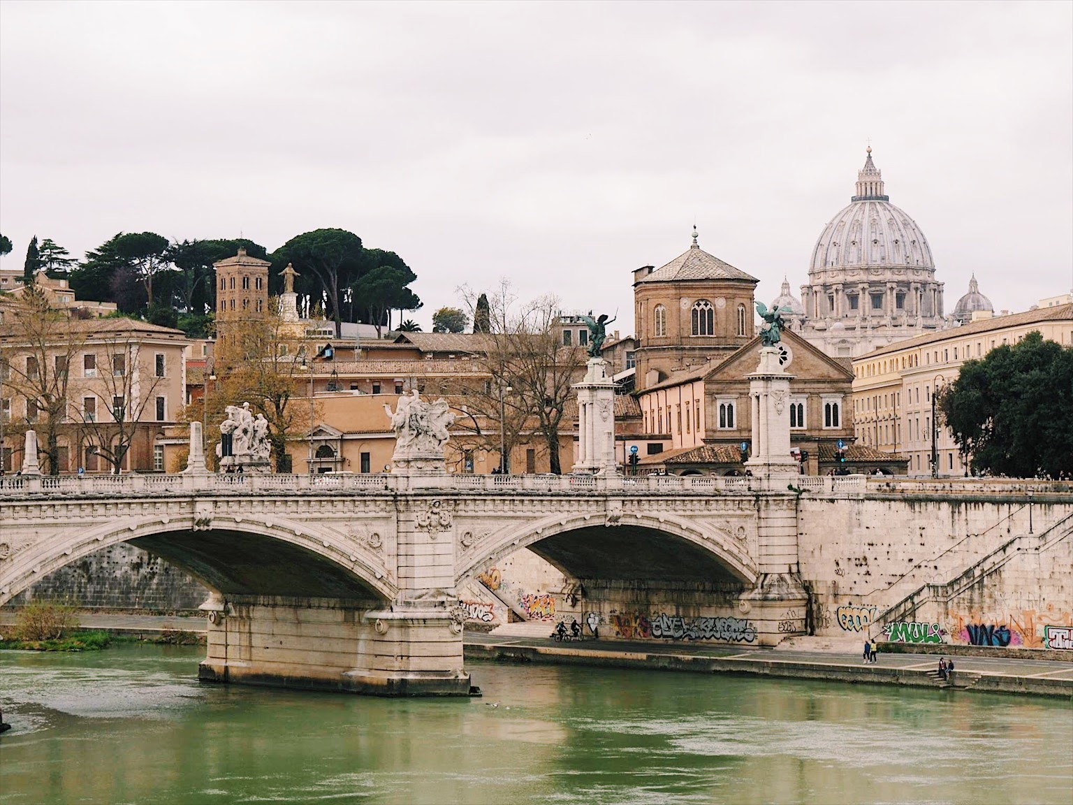 Le samedi, nous sommes partis de bonne heure pour visiter le Vatican, après une agréable balade à pied depuis notre hôtel, en passant notamment par le Castel Sant’Angelo et le Ponte Vittorio Emanuele II, le pont le plus célèbre de Rome. J’ai déjà consacré un article entier à notre visite de Saint-Pierre et des Musées du Vatican, je vous invite donc à aller le relire pour les détails !