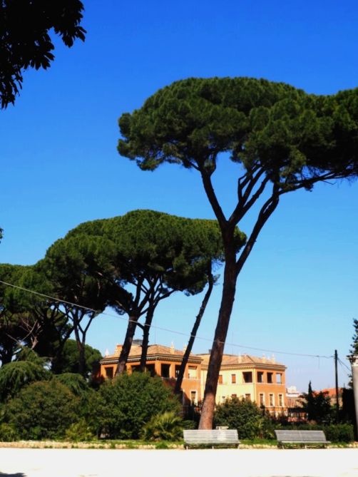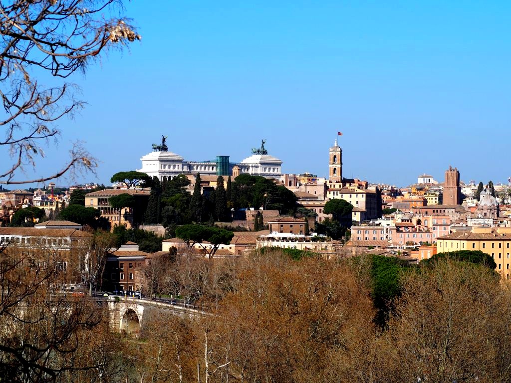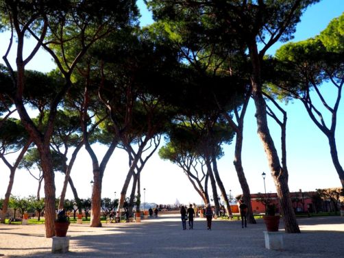 Nous sommes ensuite redescendu vers le Parco Savello, avec ses grands pins et son Jardin des orangers (Giardino degli Aranci). On y a des vues magnifiques sur Rome en contrebas.
