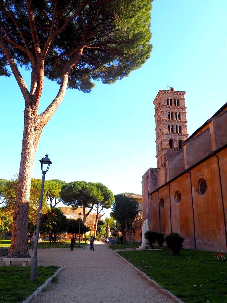 Nous avons passé l’après-midi dans l’Aventin, un quartier que j’ai vraiment beaucoup aimé (attention, ça grimpe un peu). Nous avons marché jusqu’à la Piazza dei Cavalieri di Malta, une jolie place où se trouve le Prieuré de l’Ordre de Malte. L’endroit est fermé au public mais il y a la file pour regarder par le trou de la serrure ! Pourquoi ? Parce qu’à travers le petit trou, on aperçoit ce qui est sans doute l’une des plus belles vues sur le dôme de Saint-Pierre, c’est vraiment magique ! Je n’ai pas réussi à avoir une belle photo avec mon gros appareil, il faudra donc aller voir ça par vous-même…